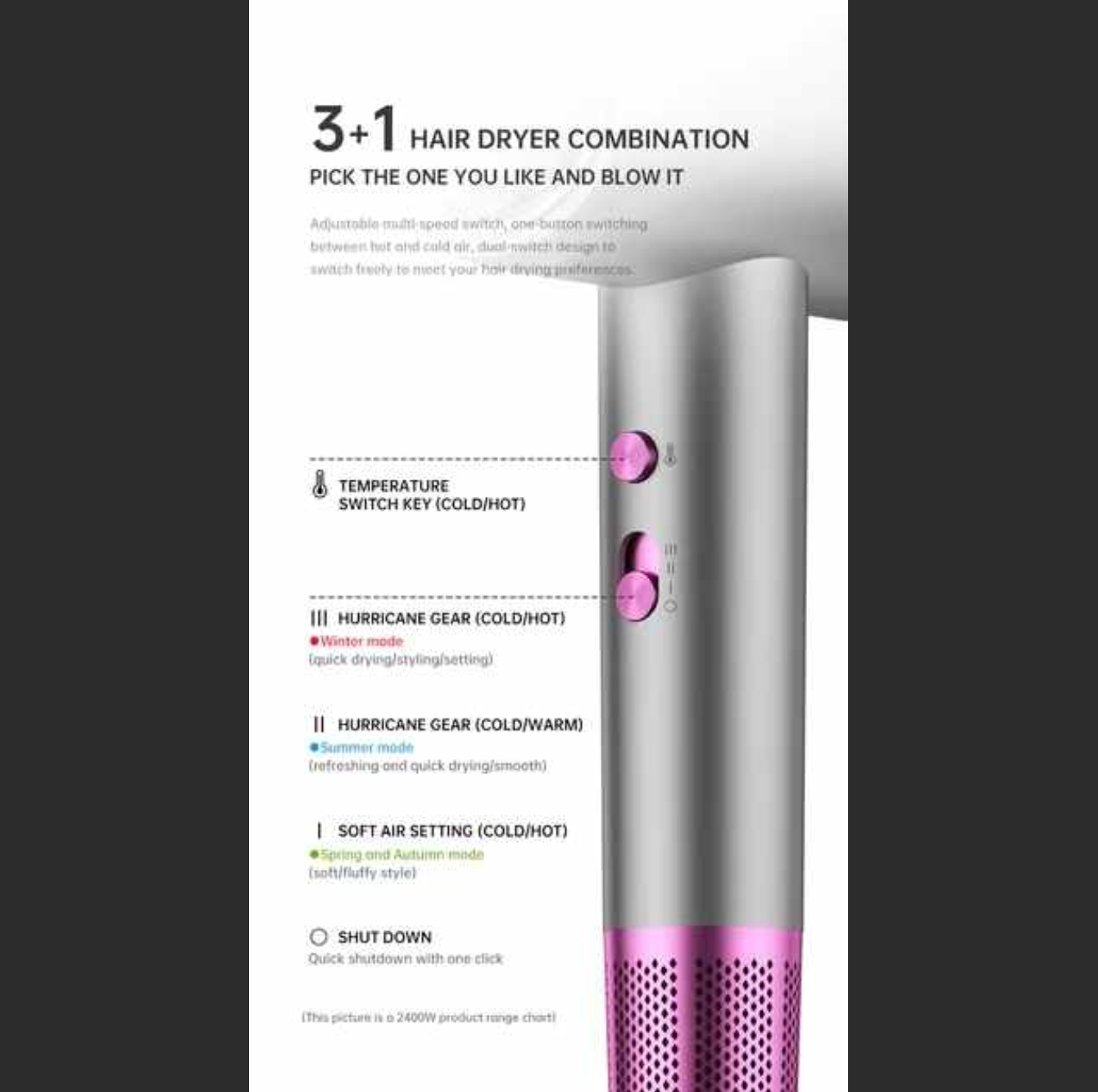 - სიმძლავრე 2200 ვატი: უზრუნველყოფს მაღალსიჩქარიან გაშრობას და სტილს პროფესიონალური ხარისხის ეფექტურობით, დაზოგავს თქვენს დროს შედეგებზე კომპრომისის გარეშე.