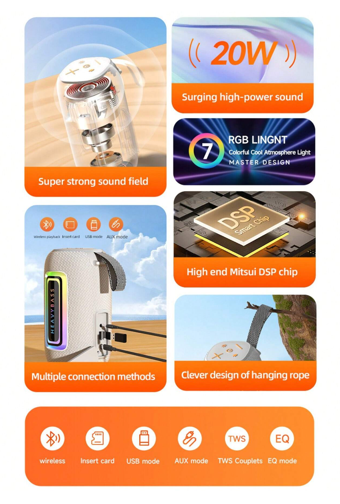 მიიღეთ მძლავრი ხმა ამ ძლიერი, პორტატული Bluetooth დინამიკით, ღრმა ბასით, გამძლე დიზაინით და მრავალმხრივი კავშირით. იდეალურია გარე თავგადასავლების, წვეულებების ან სახლში გამოყენებისთვის.