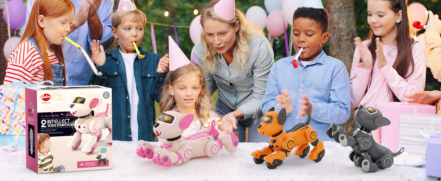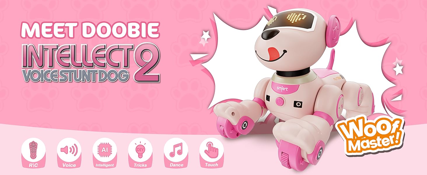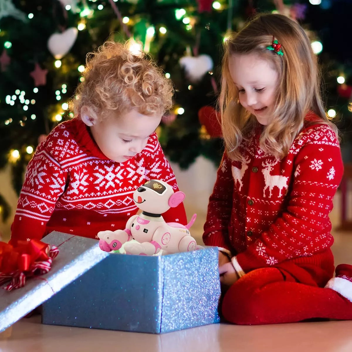 ინტერაქტიული რობოტი ძაღლი გთავაზობთ საათობით გართობასა და ჩართულობას 3 წლის და უფროსი ასაკის ბავშვებისთვის. ეს ჭკვიანი რობოტი შინაური ცხოველი პასუხობს ხმოვან ბრძანებებს, ასრულებს სხვადასხვა ხრიკებს და ხელს უწყობს შემოქმედებითობას და სწავლას ინტერაქტიული თამაშის საშუალებით.