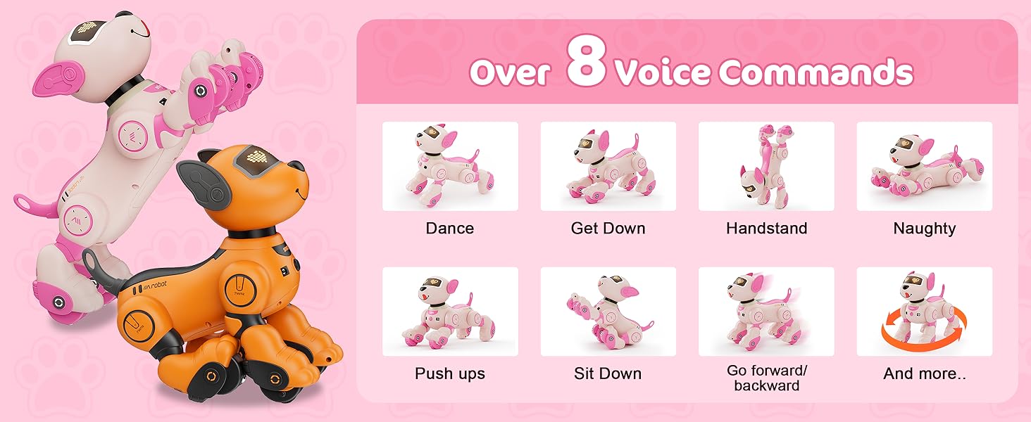 - ხმოვანი ბრძანება : ავარჯიშეთ რობოტი ძაღლი იცეკვოს, სიარული, სიმღერა, ჯდომა, საუბარი და სხვა. ის პასუხობს 15-ზე მეტი უნიკალური მოძრაობით და ჟესტით.