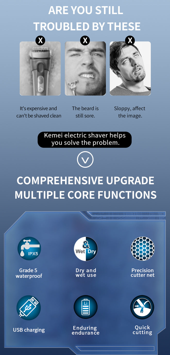 Kemei KM-780 ელექტრო საპარსი – მრავალფუნქციური მოვლის ხელსაწყო