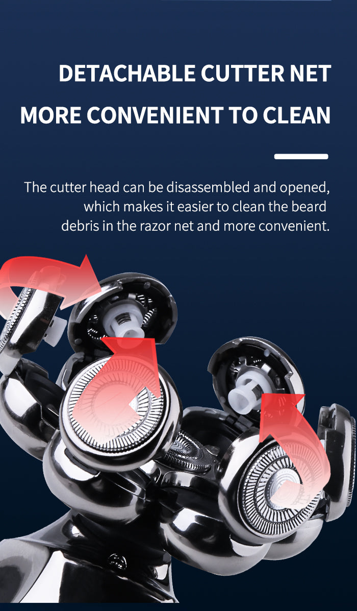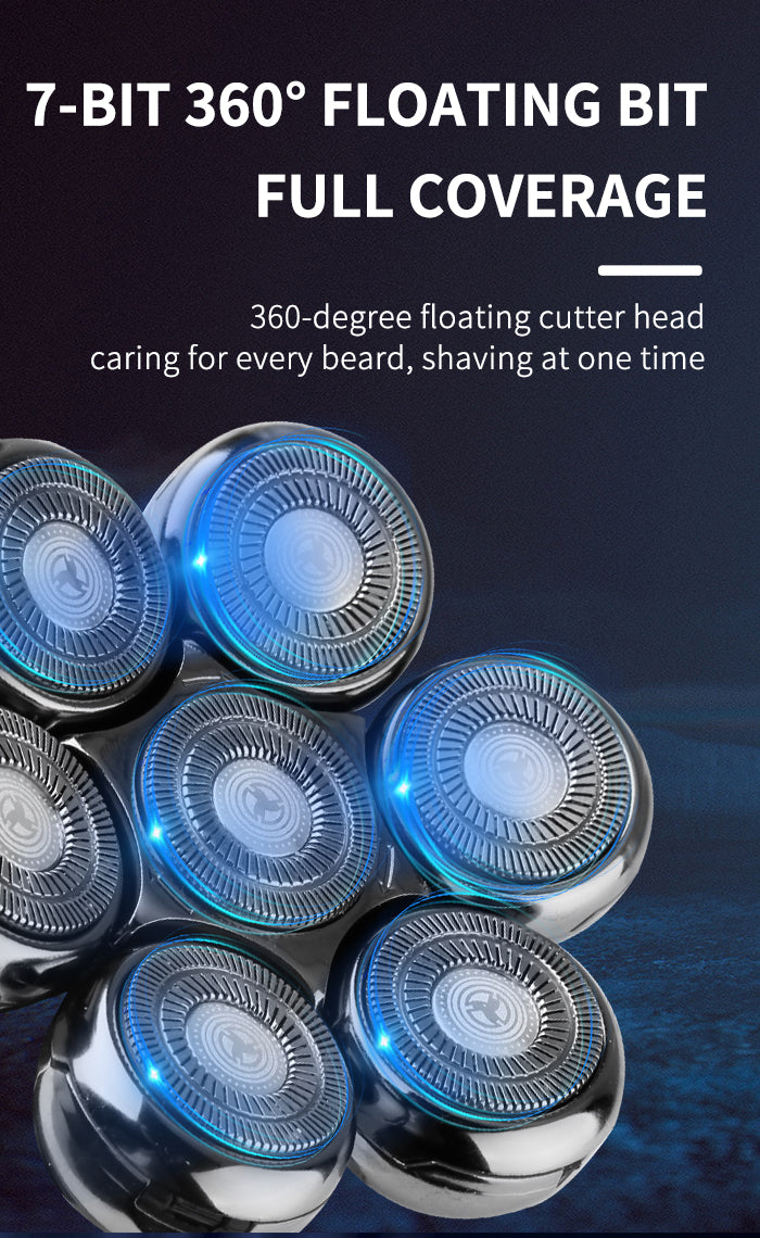 - მოწინავე 7-დანიანი სისტემა: აღჭურვილია 7 მბრუნავი პირით, რომელიც უზრუნველყოფს გლუვ პარსვას და ამცირებს გაღიზიანებას და ჩაბრუნებულ თმას.